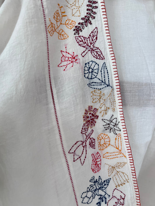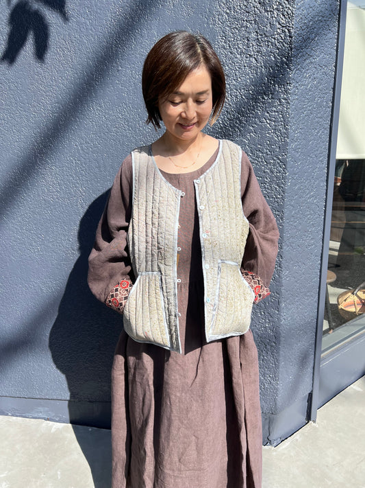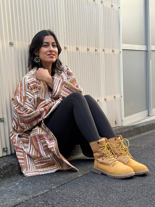 Free Falling Kantha Handblock Print Khadi Jacket Brown