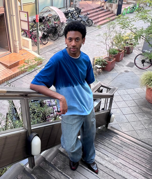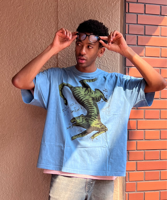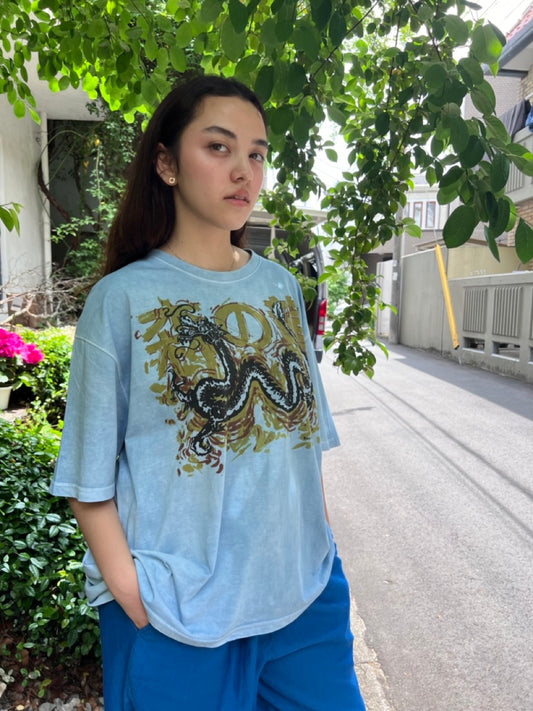 Japan exclusive: dragon print organic ice indigo relax fit t-shirt