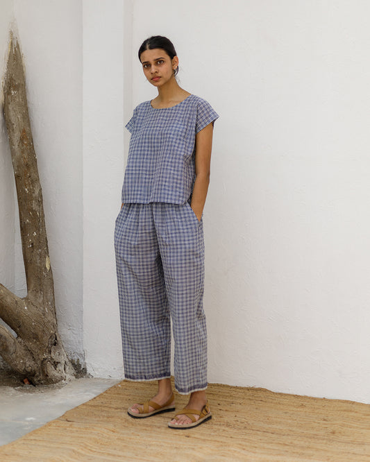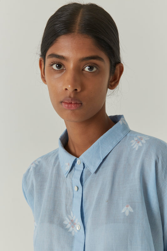 Sunday relaxed cotton handblock print shirt - blue lotus motif
