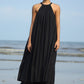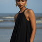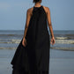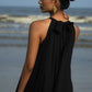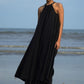 都会のジプシーのためのデリケートなマキシドレス。後ろの弓に終わる肩が露出した袖.首元にふんわりギャザー。