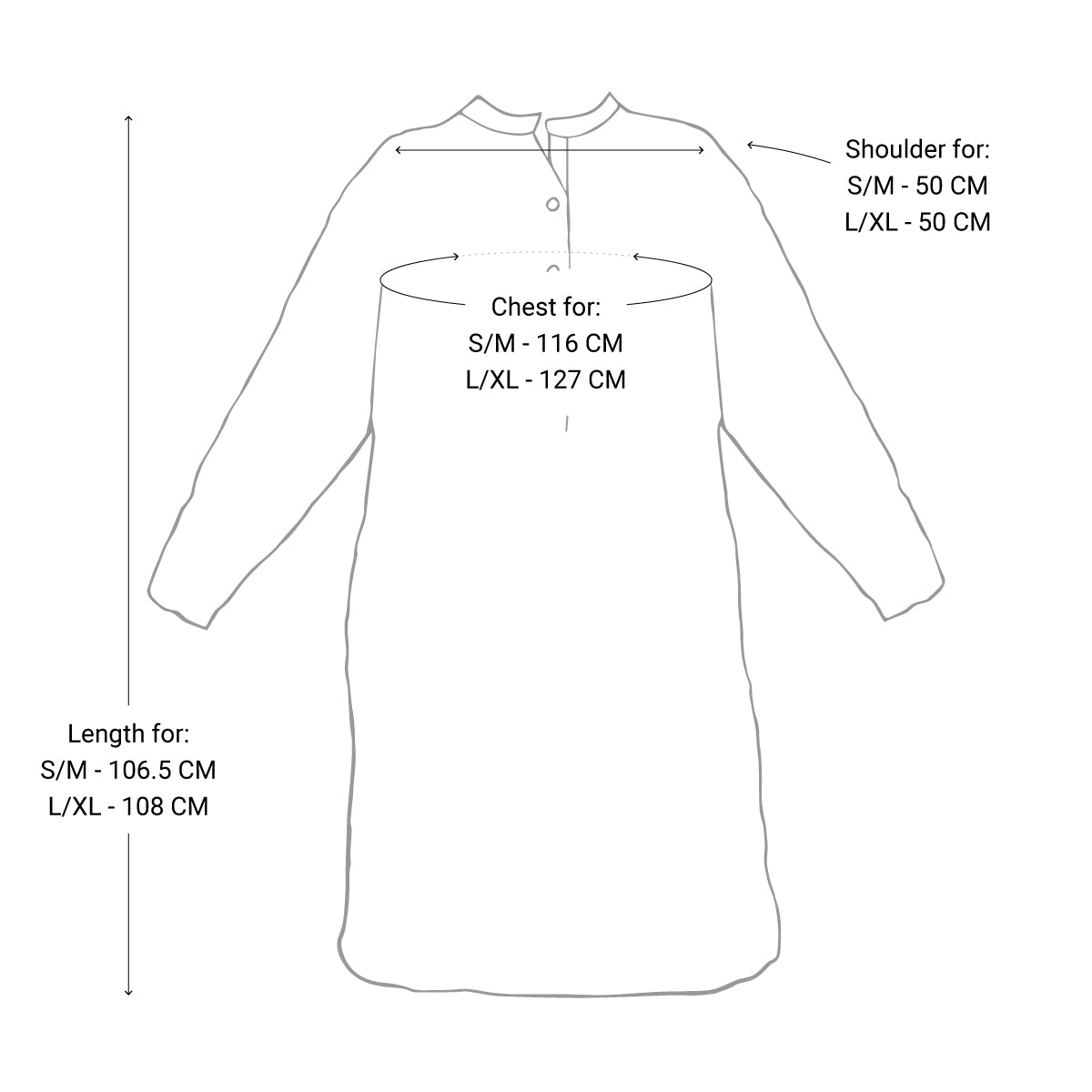 L/XL — Dress length 108 cm, chest round 127 cm, shoulder 50 cm
